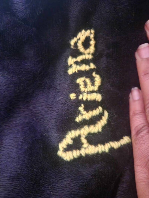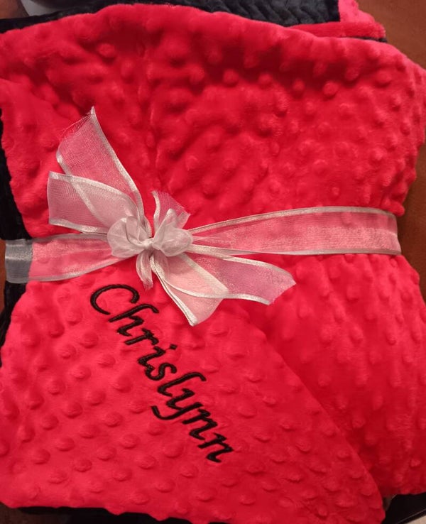 One customized blanket with name, nick name, or phrase. Phrases no longer than 5 words